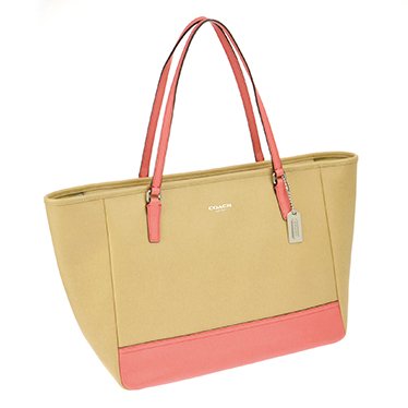 -. Title : Coach Colorblock Saffiano Leather Medium City Tote 23884 Camel Coral