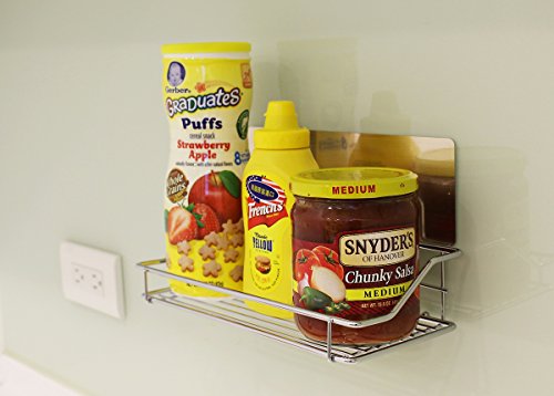 -. Feature : ****Warming, this Removable Wall Adhesive pad can only use on smooth, flat & non-porous surfaces such as tile, acrylic, stainless steel, glass, mirror and polished wood, etc. / ****Do not paste it on uneven, rough or porous surfaces such as mini-tile wall, cement wall, soil wall, white-washed wall, plaster wall, wallpaper, wall coverings, water-based coating surfaces, etc. Do not let this item come into contact with heat or open fire. If you intend to use on rough or uneven surface, this product is not suitable for you. / Adhesive-mounted metal wire basket on wall to organize spices/condiments or shampoo/soap/bathroom cleaning products. No drilling/hammer needed - just peel & stick. Strong suction adhesive for easy, instant installation. / Reusable, removable, waterproof & leaves no residue when removed. Wash with water to reuse. Chrome finish for metal wire; brushed metal look for adhesive portion / Recommended load: 11lb. Lab-tested to be able to carry 33lb while mounted on clean glass surface.