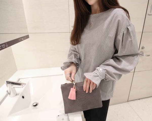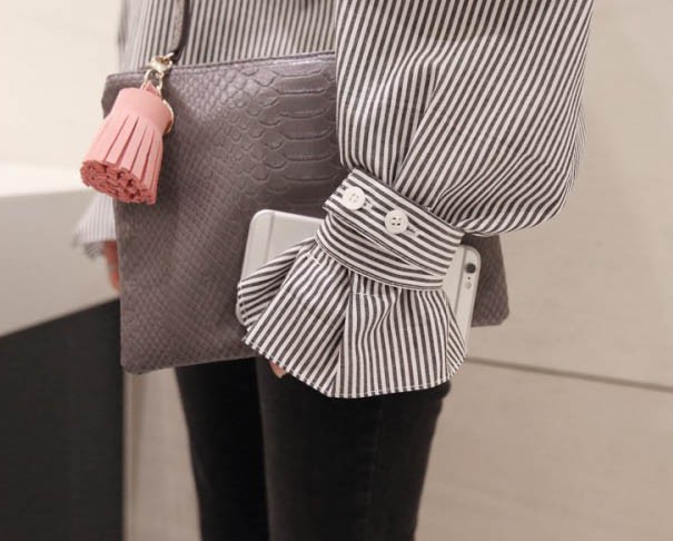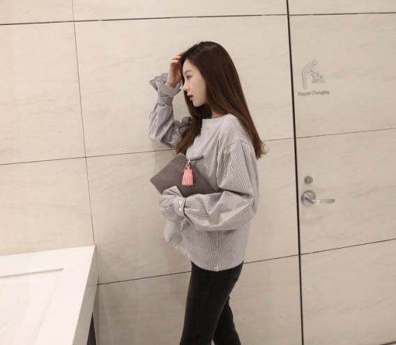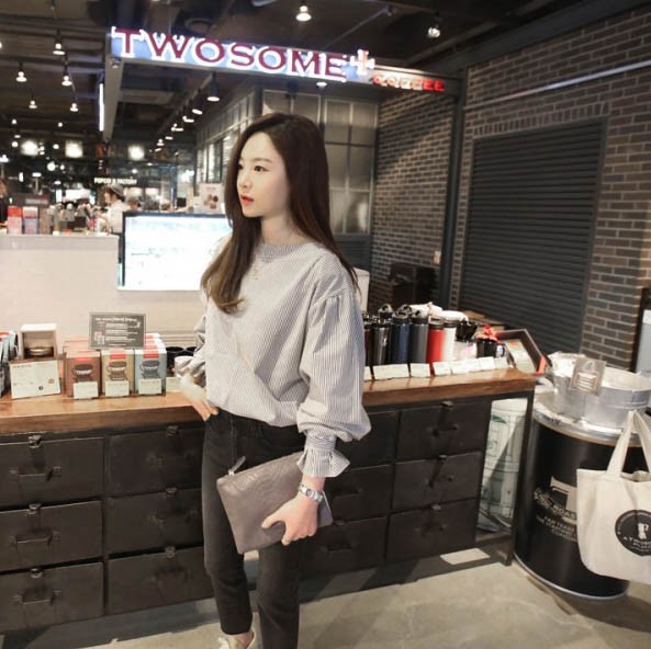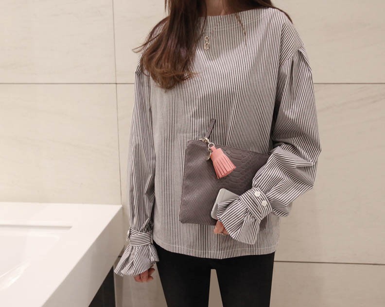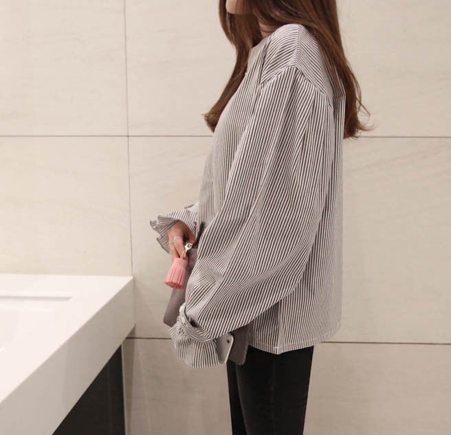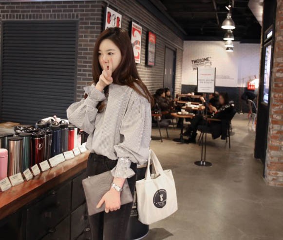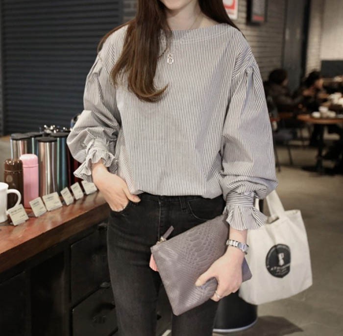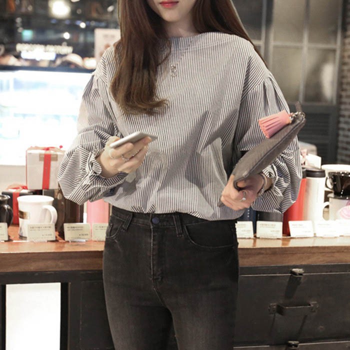 【入荷後営業日2,3日以内出荷予定 通関待ちや不良により出荷遅くなる場合はメールにてご連絡いたします。メール受信設定によっては正常に受信されない場合はございますので、 弊社からのメールを予め受信頂くようご設定くださいませ。】 トップス シャツ ブラウス ボリューム袖 ストライプ柄 大人可愛い レディス レディース 春 新作ボリューム袖ストライプ柄レディスシャツ◆素材:コットン70%+ポリエステル30%