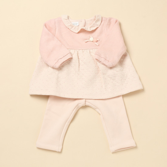 겨울철 따뜻하게 입히실 수 있는 파코라반베이비 여아 상하복 입니다.