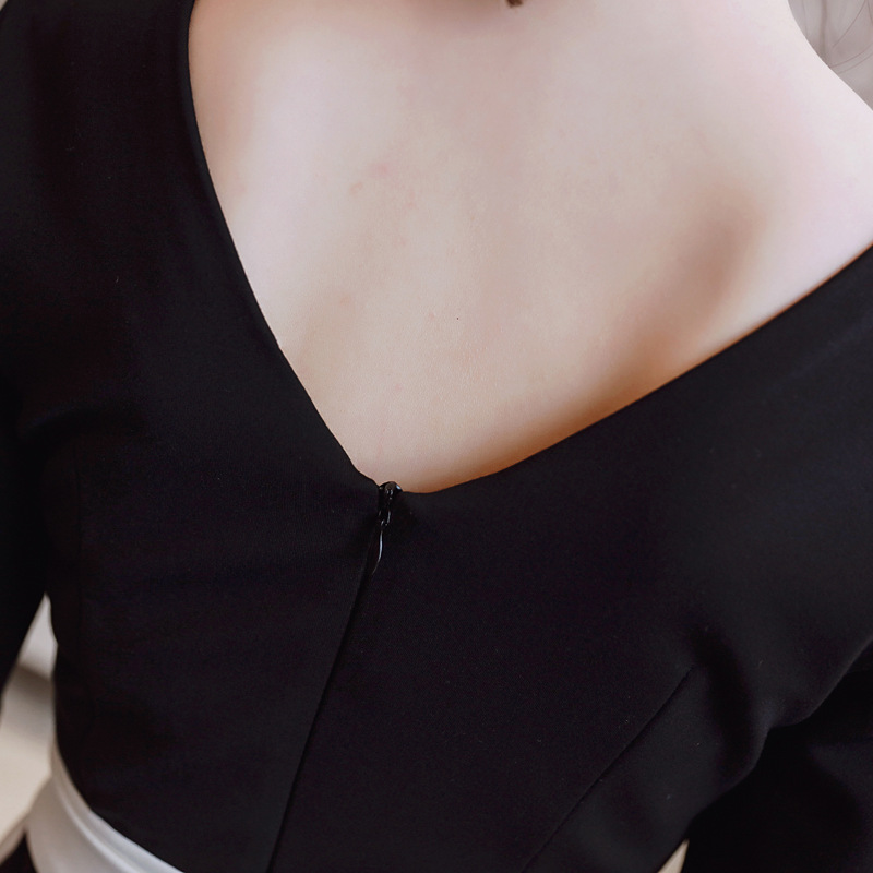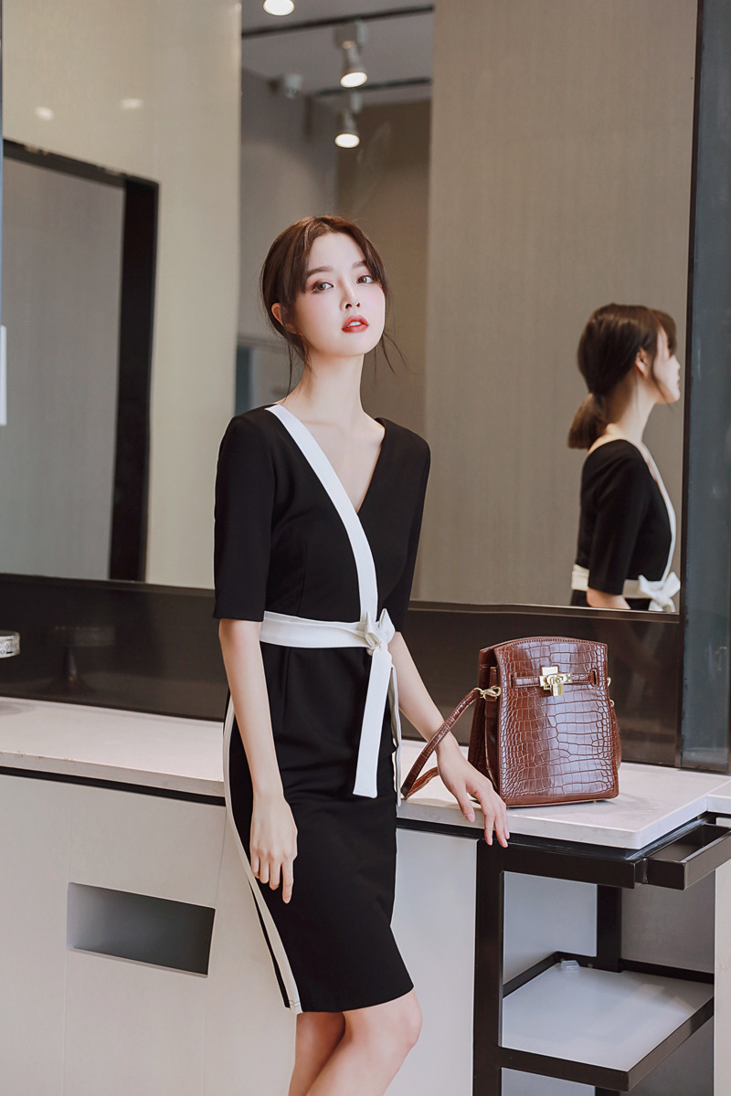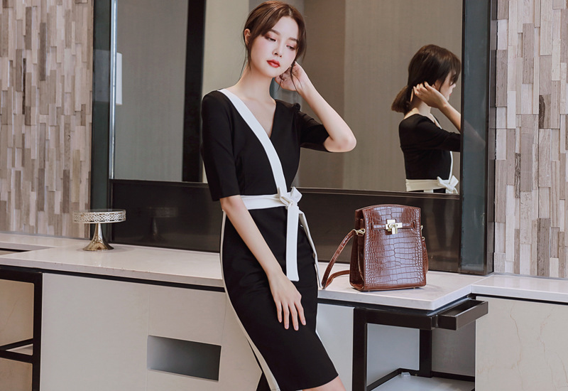 シンプルなデザインの大人ひざ丈ワンピースです。食事会やお出かけ、フォーマルな場面にもシーンを選ばずお使い頂ける一着です。