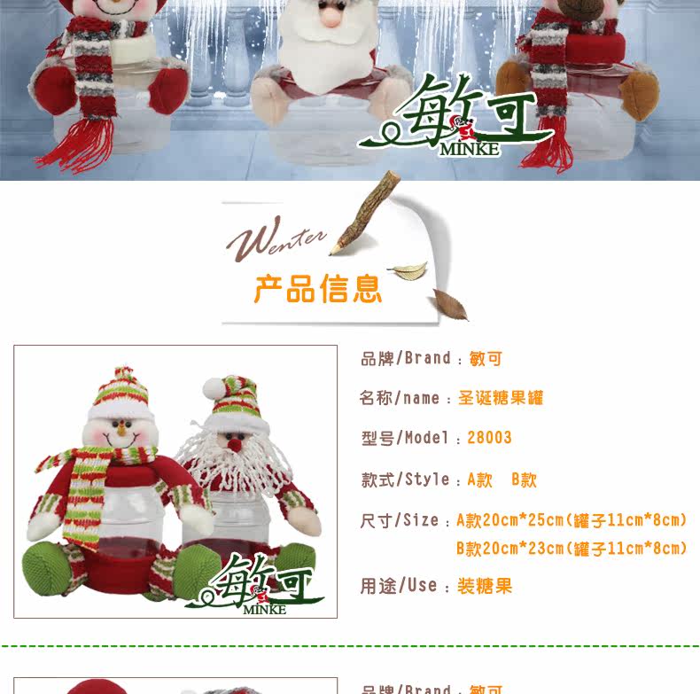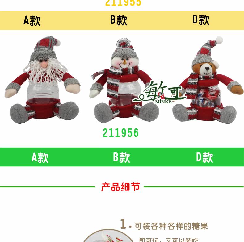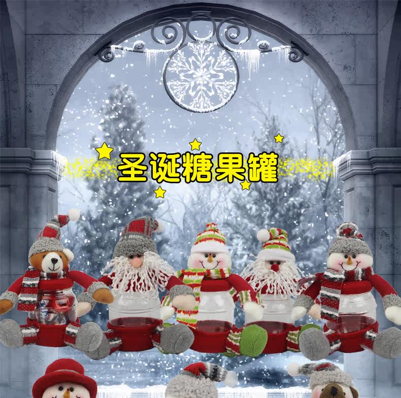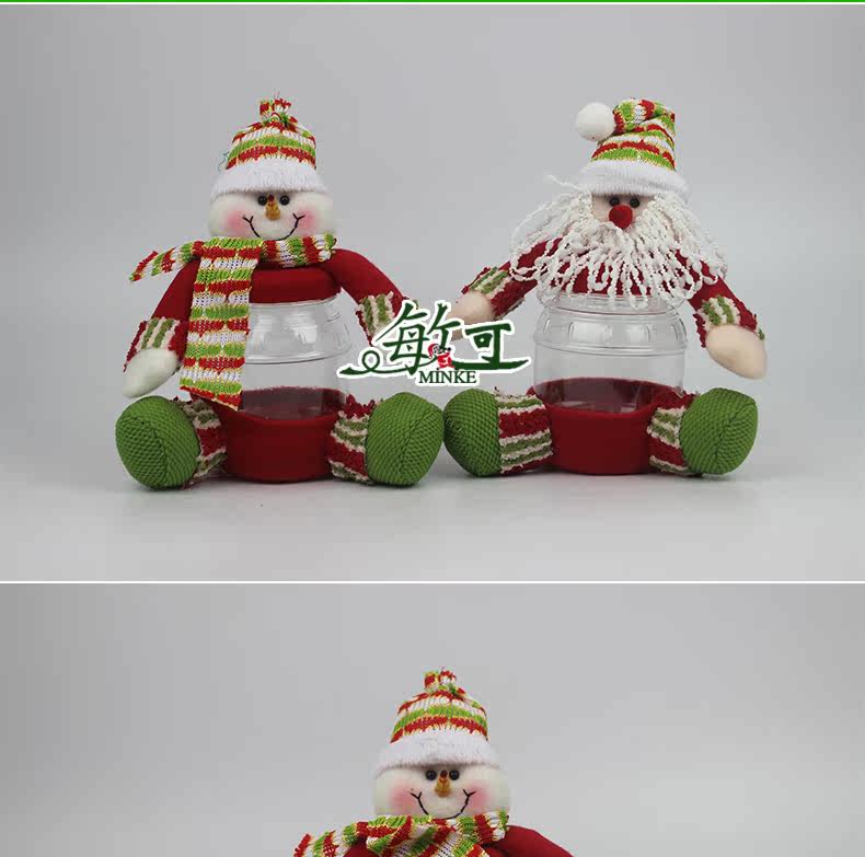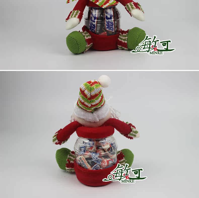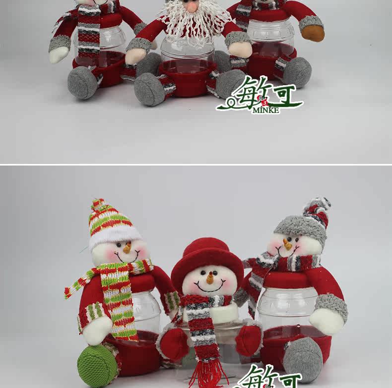 敏可 圣诞小公仔透明塑料糖果罐装饰品巧克力盒圣诞节礼物礼品