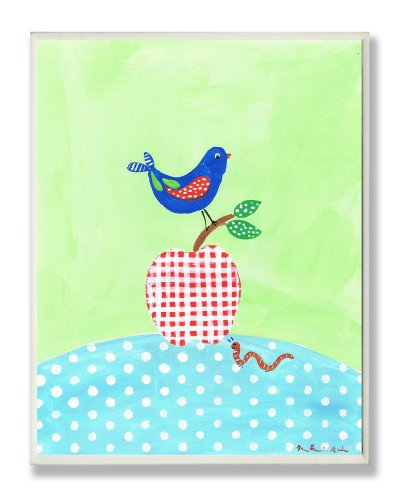 The Kids Room by Stupell Bird Perched on Red Gingham Apple Rectangle Wall Plaque