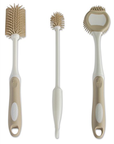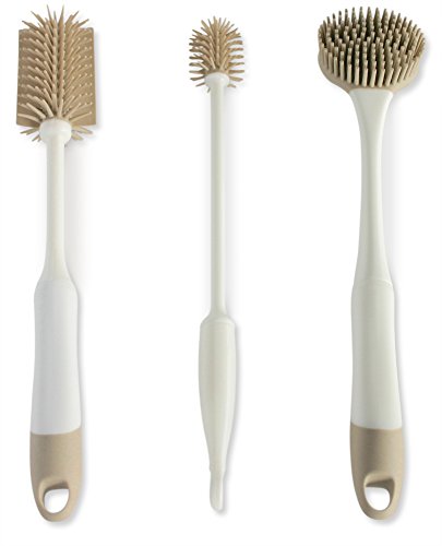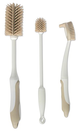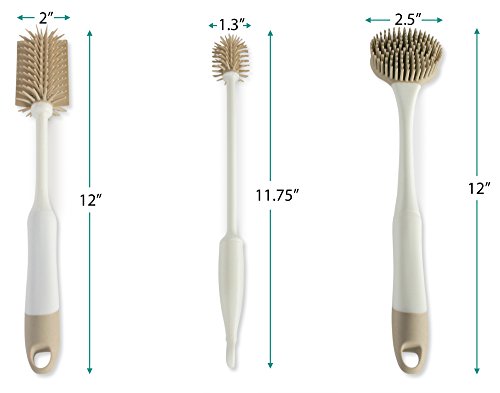 Bottle Brush Set with Bonus Brush- 3 piece set- High Grade Recyclable Plastic/ BPA Free/ Easy to Clean all types of Bottles/ Breve Home Goods- Bottle Brush- Baby Bottle Brush-with Bonus Kitchen Brush