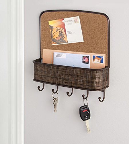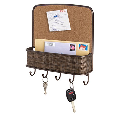 mDesign Cork Board with Mail & Key Organizer for Kitchen, Hallway, Entryway - Wall Mount, Bronze