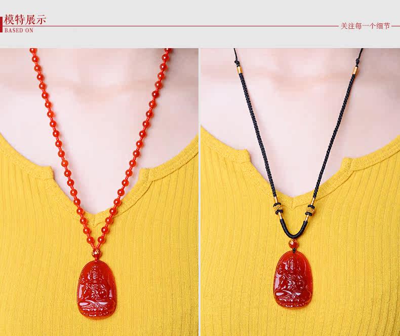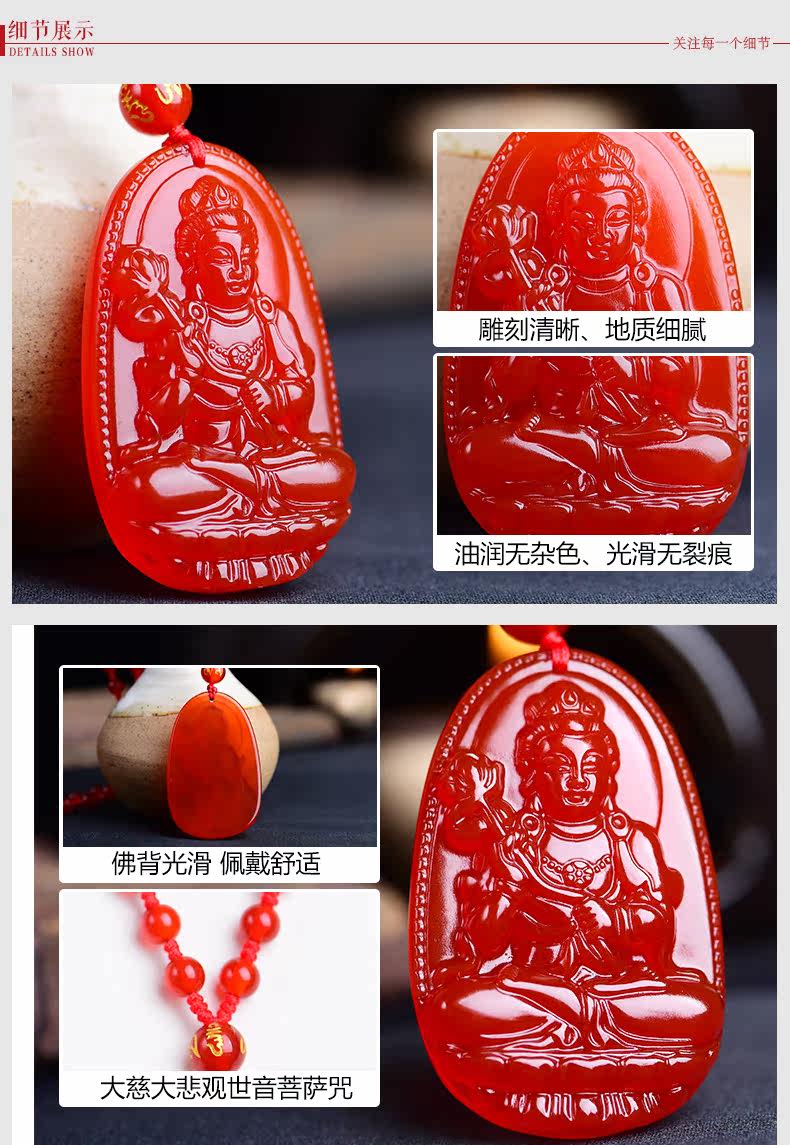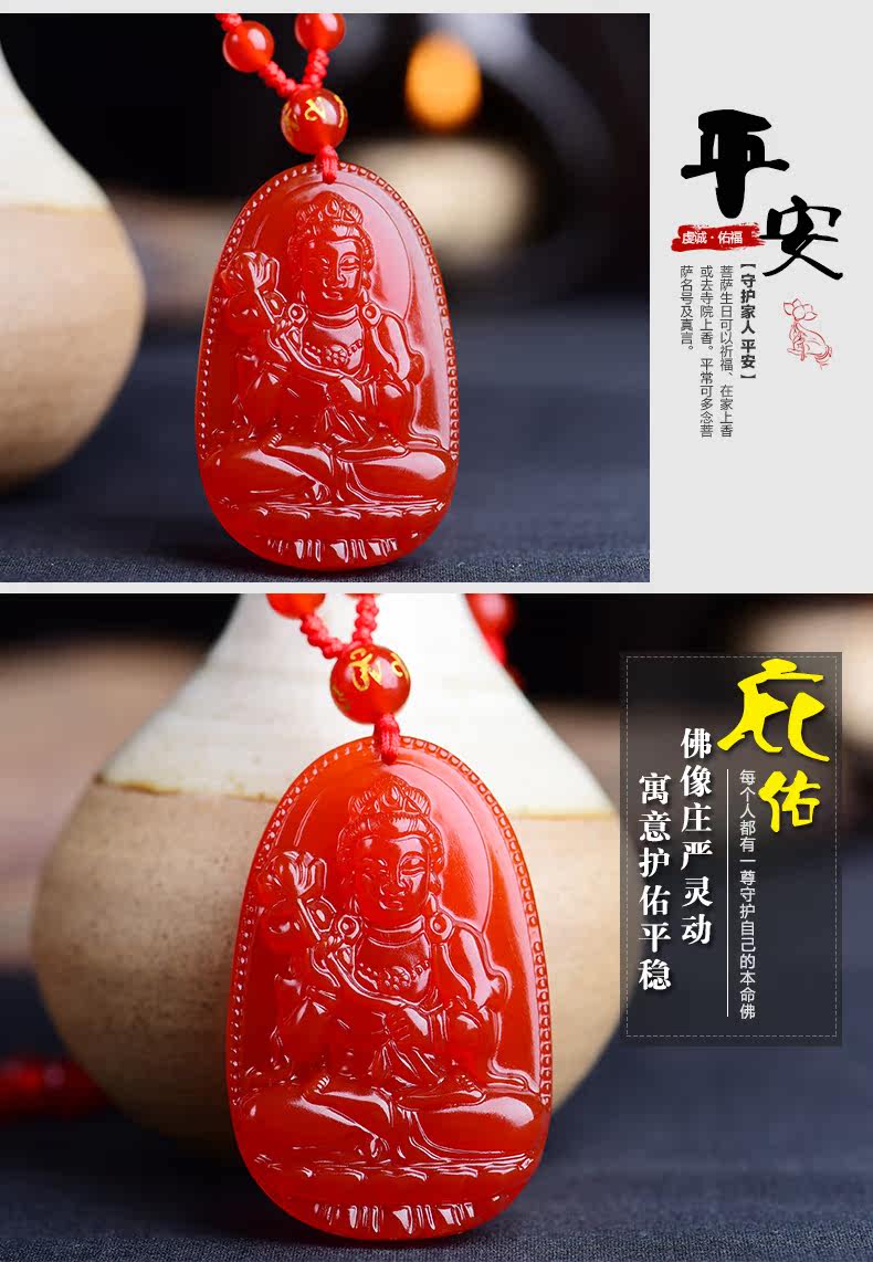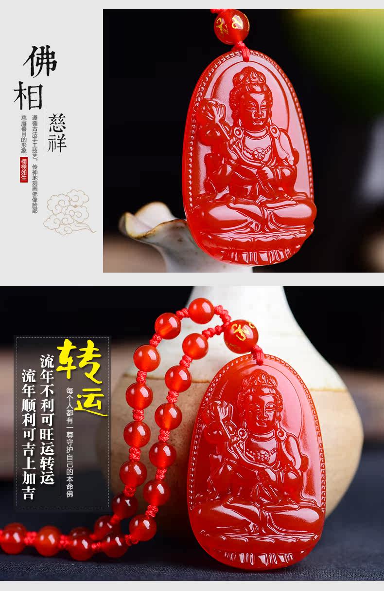 开光天然红玛瑙大势至菩萨本命佛吊坠 生肖属马守护神男女款项链