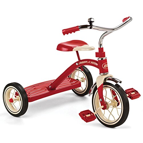 Studio : Radio Flyer Publisher : Radio Flyer Product Description Enjoy watching your child play outside with the Radio Flyer Classic Tricycle. This steel tricycle features chrome handlebars for stability and changing directions. The wheels showcase spokes and comes with real rubber tires that ensure a smooth riding experience. This Radio Flyer Classic Tricycle improves motor skills in addition to providing a whole lot of fun. 0