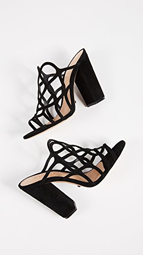 Binding : Apparel Product Description A cage-style design rendered in patterned cutouts creates the illusion of slender straps that curve apart and weave together on these smooth nubuck-leather Schutz sandals. The airy pair is made with a substantial block heel, which means that you can mingle for hours without losing feeling in your feet, and if that's not a holiday party miracle, what could be? 0