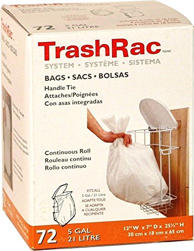 Sunbeam Trashrac Trash Bags 5 Gal. 0.7 Mil 72 Bags - Psack of 2 (Total 144 Bags)