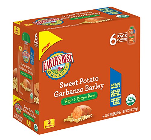 Earth’s Best Organic Baby Food Purees are available in squeezable, resealable, shelf stable pouches that are specially fortified with a unique vitamin blend that is essential for normal growth and development plus Protein and Fiber*. Available in various combinations of fruits, veggies & wholesome grains, your little one will love these tasty pouches. Perfect for babies 6 months +, all Earth’s Best pouches are USDA Organic and contain no artificial flavors, colors or preservatives. Not Certified Kosher. *Daily Value of vitamins, Fiber & Protein dependent on flavor variety.Feature
