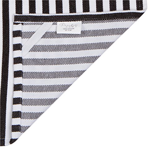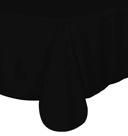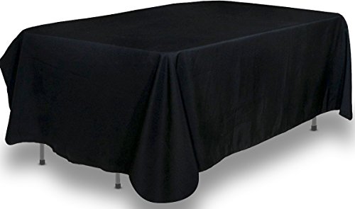 - The 90 by 132-Inch tablecloth that folds over the hemmed edges comes in black and white color with a sleek polyester blend depicting elegance and sophistication