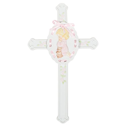 -. Title : Pacific Giftware Porcelain Bisque Finish Praying Girl Cross with Puppy Statue, 8.5" W