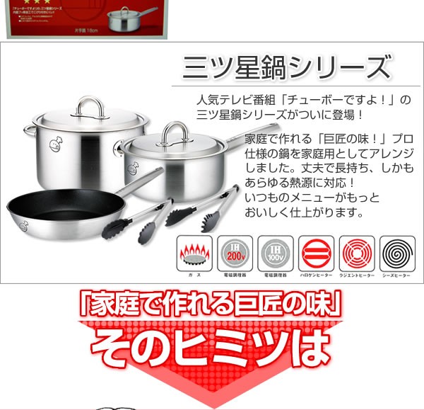 | 「チューボーですよ!」の三ツ星鍋シリーズ!家庭で作れる「巨匠の味!」プロ仕様の鍋を家庭用としてアレンジしました。いつものメニューがもっとおいしく仕上がります。 |