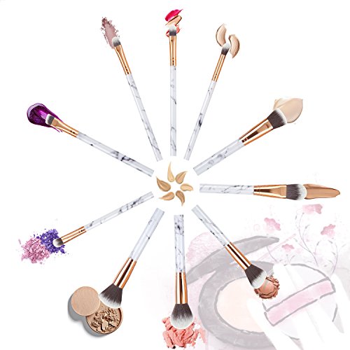 - 10 pieces marble make up brushes suitable for a wide range of products like powders, creams, and liquids to mineral makeup, contouring, shading, highlighter, and shimmer