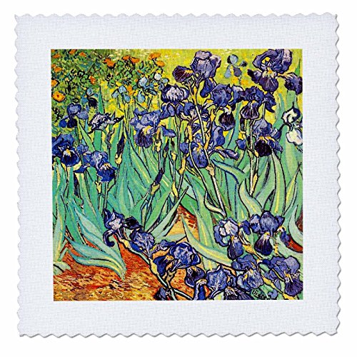 3dRose qs_155630_2 Irises by Vincent Van Gogh 1889 Purple Flowers Iris Garden Copy of Famous Painting by The Master Quilt Square, 6 by 6"