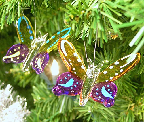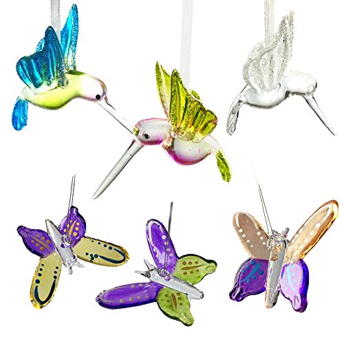 Crystal Hummingbird & Butterfly Ornaments Gift Set with Glitter Accents - Handblown Christmas Ornament - Holiday Decorations Christmas Tree Ornaments Xmas Gift for Bird Lover