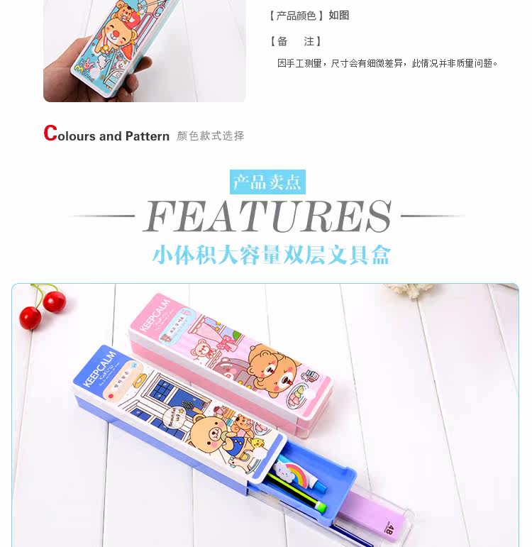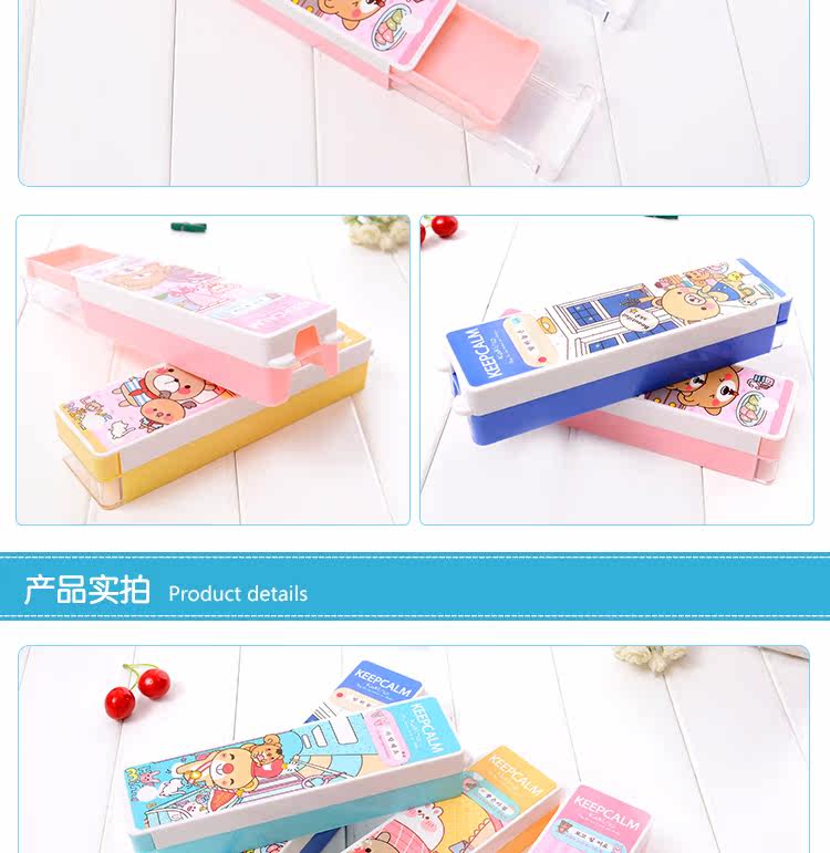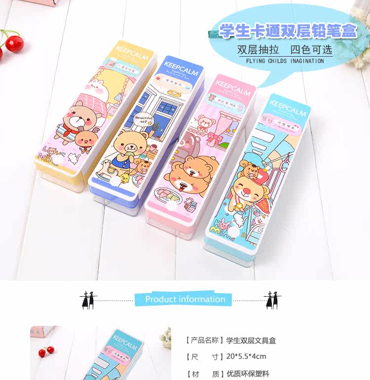 多功能塑料卡通双层文具盒抽拉铅笔盒学生礼物学生收纳学习文具