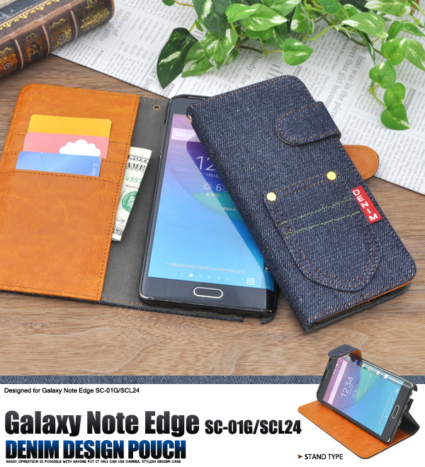 Galaxy Note Edge SC-01G/SCL24用デニムデザインスタンドケースポーチ(ジーンズデザイン)