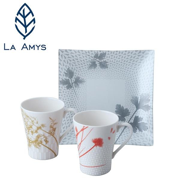 植物のシルエットがデザインされたマグとトレーのセットです。華やかながらも大人っぽい落ち着いた色合いがおしゃれ。ご自宅用にはもちろん、ギフトにもオススメです。 |