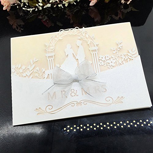 WOMHOPE® 50 Pcs - Mr & Mrs Wedding Invitation Hollow Laser Cut Lace Shimmer Party Invitations Cards Birthday Invitations Cards Wedding Favors (White...