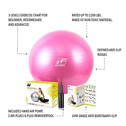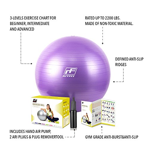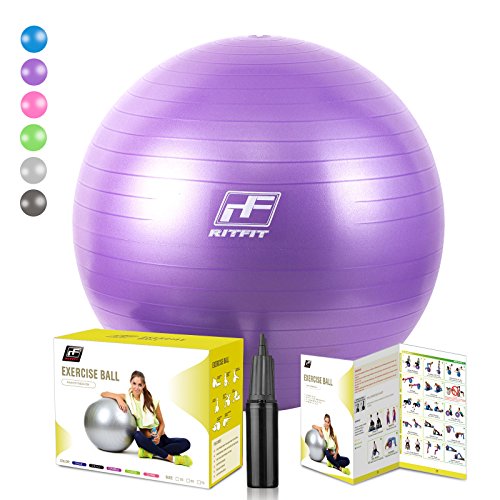 2000lbs Exercise Stability Ball By RitFit, Anti Burst for Pilates Yoga Gym Fitness&Balance, Hand Pump& Workout Guide Included,Gym Quality&Phthalate Free (Purple, 65cm)