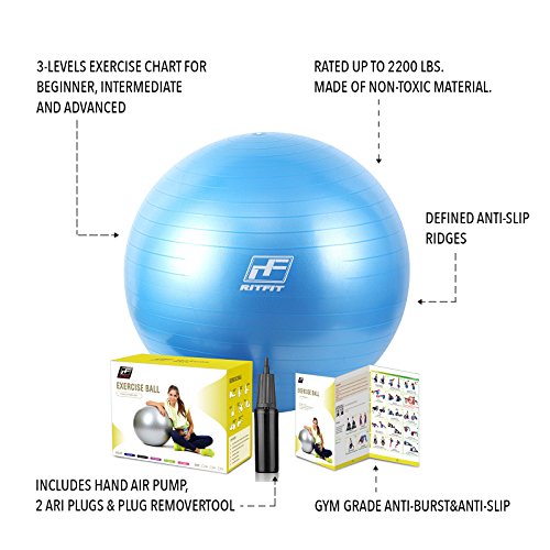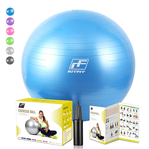 2000lbs Exercise Stability Ball By RitFit, Anti Burst for Pilates Yoga Gym Fitness ,Use As Desk Chair, Hand Pump& Workout Guide Included,Gym Quality (Blue, 75cm)