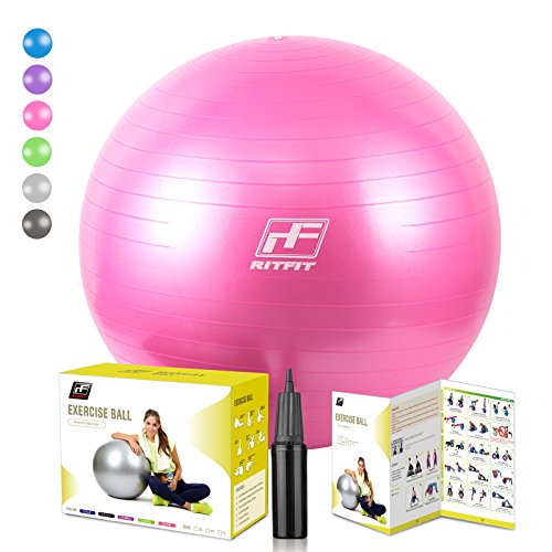 2000lbs Exercise Stability Ball By RitFit, Anti Burst for Pilates Yoga Gym Fitness ,Use As Desk Chair, Hand Pump& Workout Guide Included,Gym Quality (Pink, 55cm)