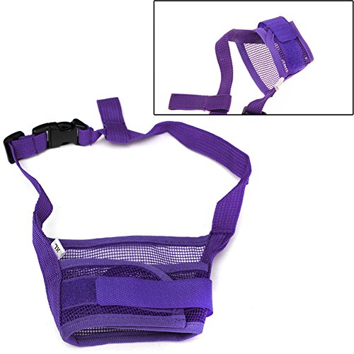 Studio : Seacan Publisher : Seacan Binding : Misc. Product Description Product Descriptions Strength, Comfort and Safety, helps to stop biting, chewing and barking. Prefect to prevent your pampered ones from chewing your furniture when you are not around them. Adjustable strap with buckle, easy to put on. Velcro closure, difficult for dogs to remove with their paws. Still allows drinking panting (but not recommended for long period of continuous use). Material: Nylon Mesh Size: S, M, L, XL Color: Black, Blue, Purple Product Includes 1 x Pet Dog Bark Mask