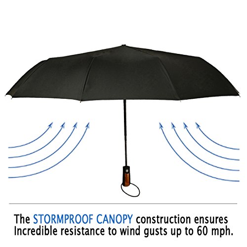 -. Feature : AUTOMATIC, COMPACT, AND SUPER LIGHT - Auto open close function allows for easy one-handed operation. Measures just 13" long and weighs less than 1lb for easy storage in purses, briefcases, backpacks, luggage and more! / WINDPROOF DESIGN - Most umbrellas are made of 6 or 8 aluminum ribs but Kung Fu Smith is fortified with 10 reinforced fiberglass ribs that flex slightly to withstand powerful gusts without turning inside out. / SUPERIOR WATERPROOF - Kung Fu Smith travel umbrella can protect you even if in a drenching downpour with a premium quality canopy which is made from 200T pongee that is highly water repellent and quick drying. / QUALITY WORKMANSHIP - Designed with a 2-fold chrome plated metal shaft, and strong metal frame to allow for greater stability in high winds. The ergonomic, slip-proof, and wooden handle with wrist strap allow for easy carrying. A protective travel sleeve is included. / LIFETIME REPLACEMENT GUARANTEE - You are protected for life from the rain, sleet and snow, through our lifetime replacement guarantee program. If anything at all goes wrong with your umbrella, we will send you a replacement absolutely free, no return required!