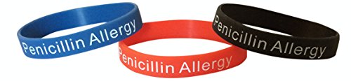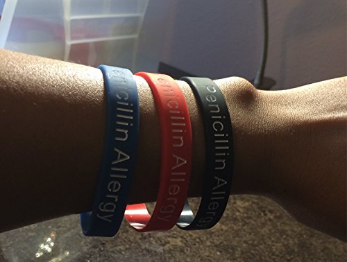 - Title : Penicillin Allergy Bracelet Medical Alert Silicone Wristband(Pack of 3) Black, Red, and Blue Plus Bonus Wellness Article Included