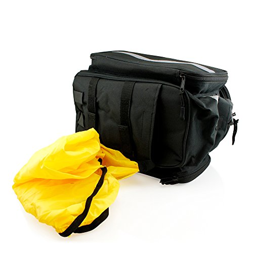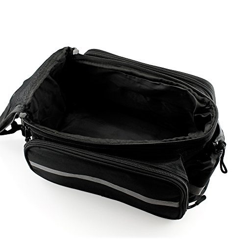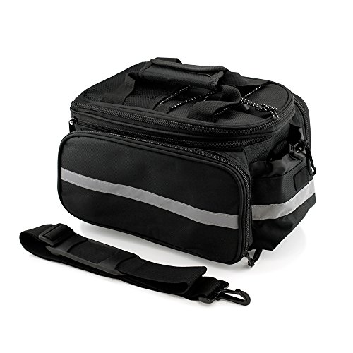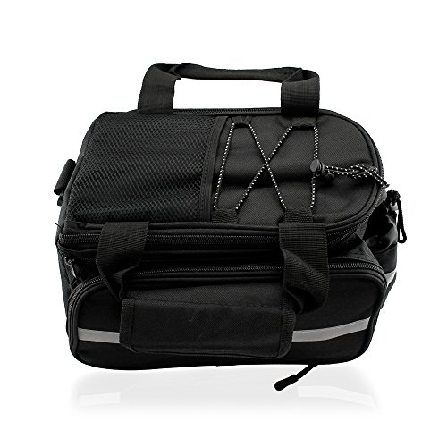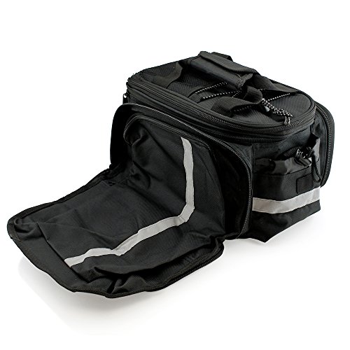 Studio : Generic Publisher : Generic Product Description This rear seat bag is designed for moderately long rides. It can cope with most road conditions and features solid and durable material and uncompromising functions including one large main compartment, two side pockets and a bottle pocket, a mesh compartment, built-in bungie cords, reflective stripe and light belt for night riding safety, a carrying handle shoulder strap and more. 0
