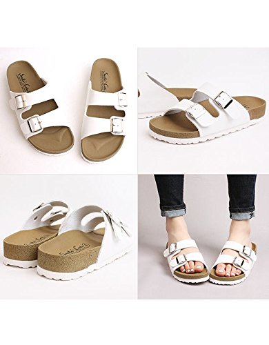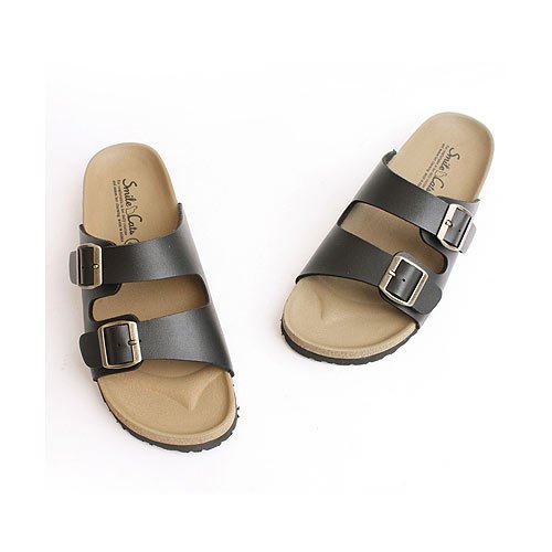 -. Title : スリッパ カジュアル レディース メンズ ぺたんこ 二重ベルト スポーツ サンダル 合皮 バックル ビーチサンダル
