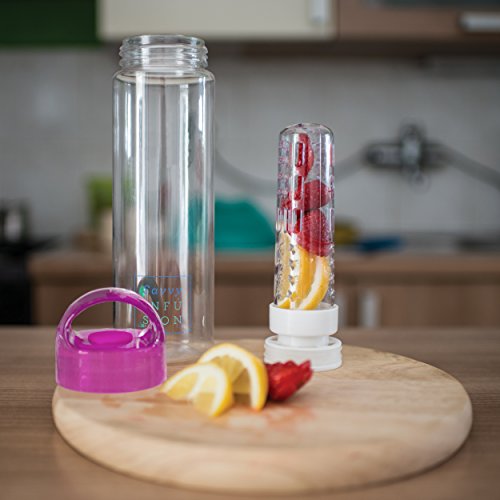 "We really like these infusion water bottles so much! The infusion basket is longer so it goes farther down in the water and we love the top which has a handle making it easier to take with you. These are really the best we have had!" J.D. Ball