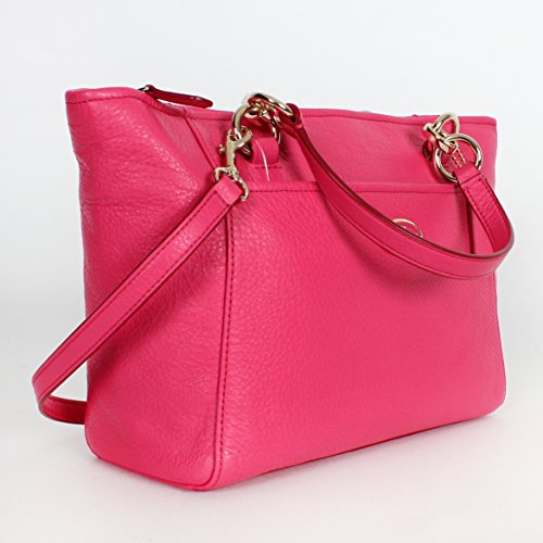 Studio : Coach Publisher : Coach Binding : Accessory Product Description lavishly plated chain hardware. With a crossbody strap that snaps on and off with a click, it transitions from day to evening or work to weekend with ease. Pebble leather. Inside zip, cell phone and multifunction pockets,. Zip-top closure, fabric lining. Handles with 4 3/4" drop. Detachable strap for shoulder or crossbody wear. Measurements: bottom width: 14 in depth: 4 in height: 7 3 ? 4 in strap length: 49 1 ? 2 in strap drop: 23 1 ? 2 in handle length: 13 in handle drop: 4 3 ? 4 in weight: 1 lb 4 oz. Bottom width: 14 in. Depth: 4 in. Height: 7 3 ? 4 in. Strap length: 49 1 ? 2 in. Strap drop: 23 1 ? 2 in. Handle length: 13 in. Handle drop: 4 3 ? 4 in. Weight: 1 lb 4 oz. Color: LI/Pink Ruby 0