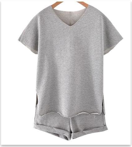 -. Title : セットアップ パンツスーツ 上下セット ショートパンツ ゆる Tシャツ ブラウス シャツ 半袖 2点セット パンツ グレー