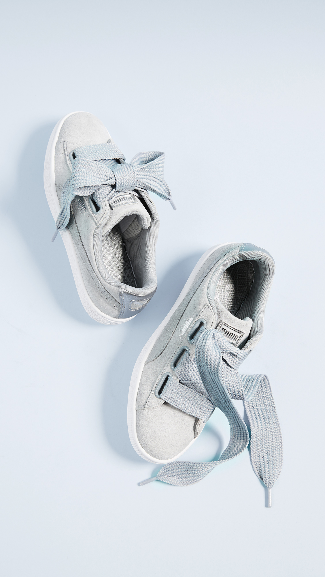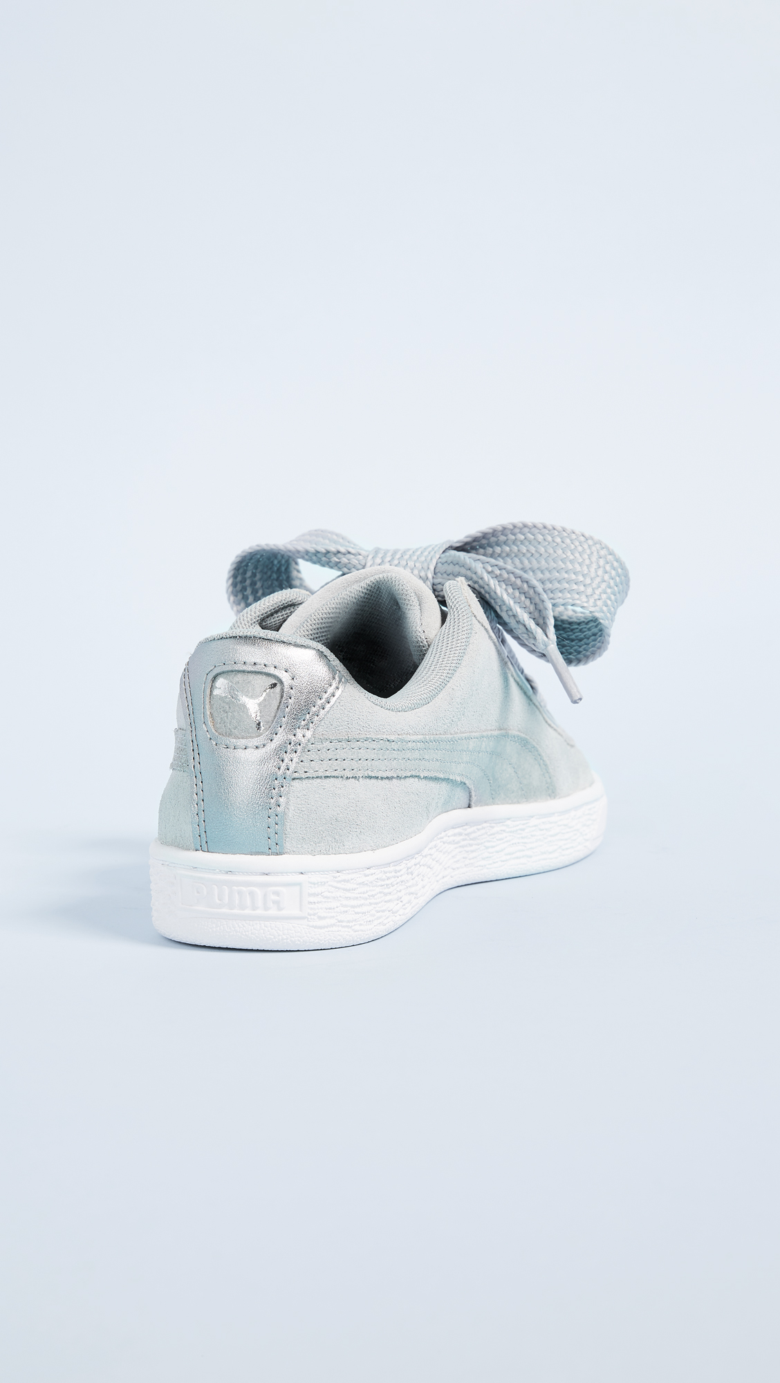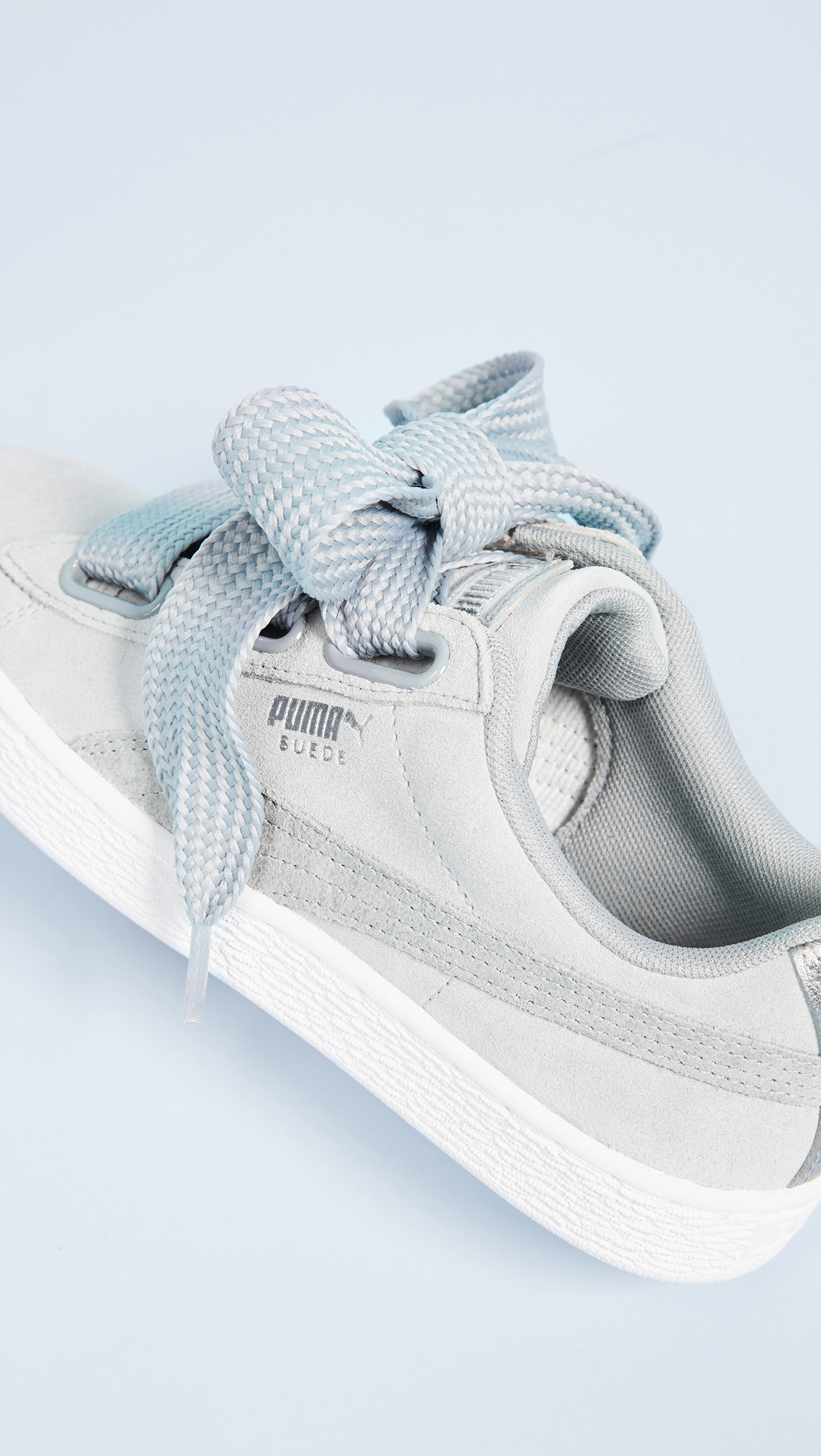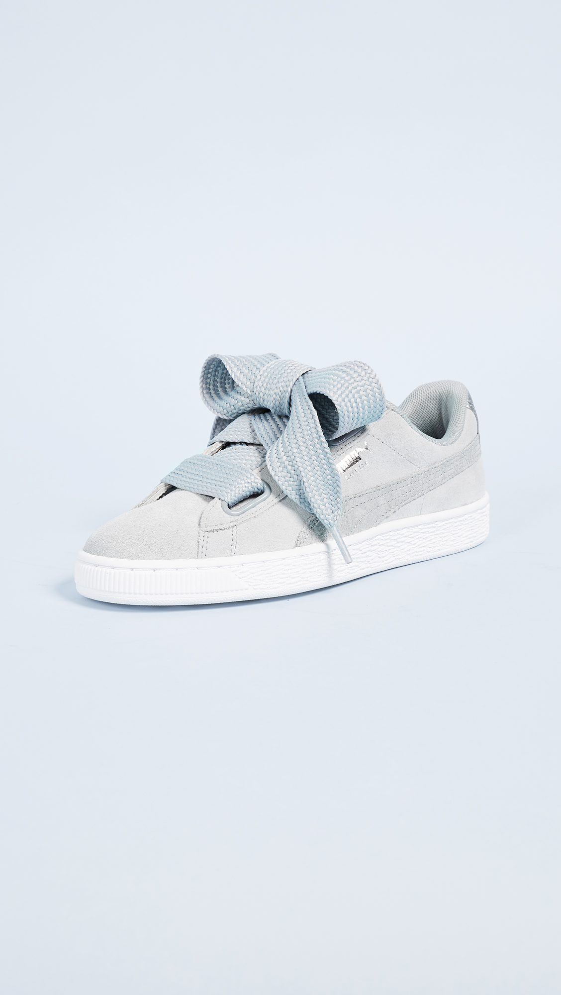 Suede PUMA sneakers featuring wide lace-up ties. Optional satin ribbon ties. Logo accent and metallic lettering at the side. Textured platform. Rubber sole.Leather: Cowhide.Imported, Indonesia.This item cannot be gift-boxed.