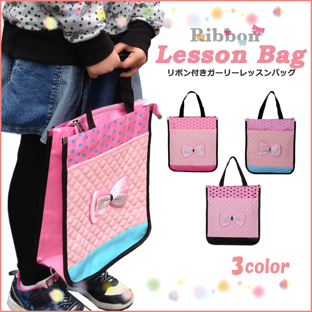 リボン付きガーリーレッスンバッグ