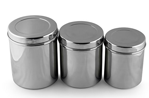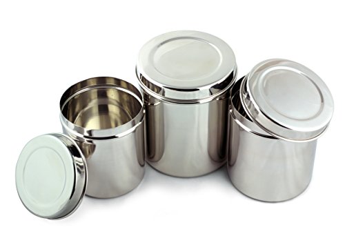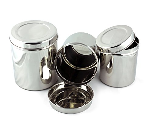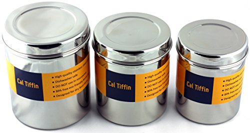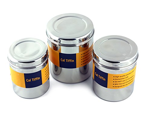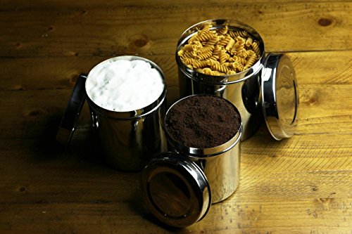 Cal Tiffin Stainless Steel CANISTER set of 3 with lids (64, 48, 36 fl oz). Great for sugar, salt, coffee, tea, flour storage - Eco friendly, Dishwasher Safe, BPA free container