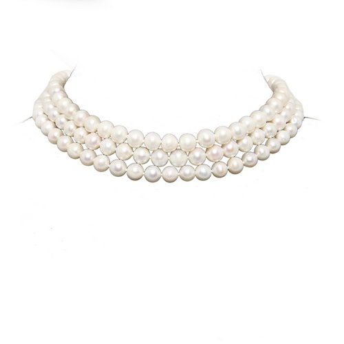 Bridal Wedding Jewelry 3-Row White Choker A Grade 6.5-7.5mm Freshwater Cultured Pearl Necklace 14"