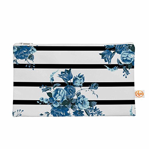 KESS InHouse NL Designs "Blue Floral Strips" Black White Everything Bag, 8.5" x 6" (NL1071AEP04)
