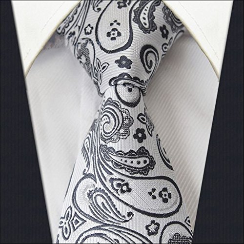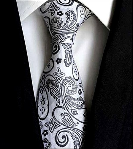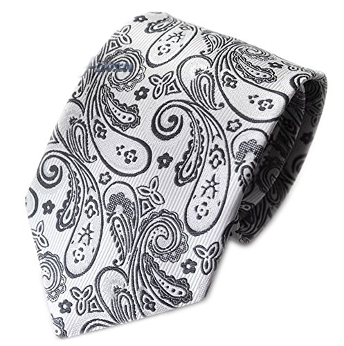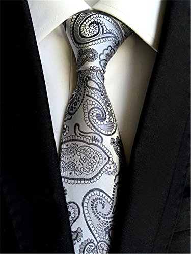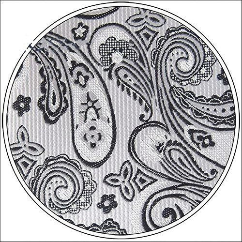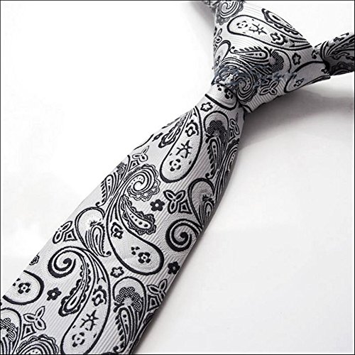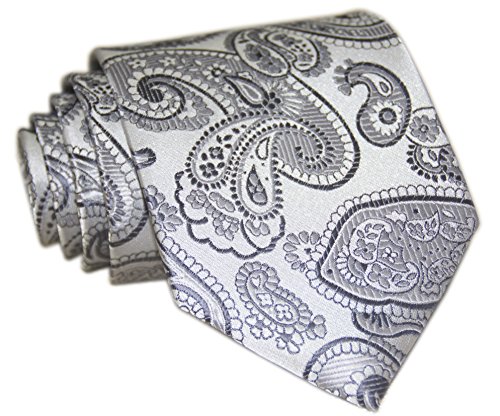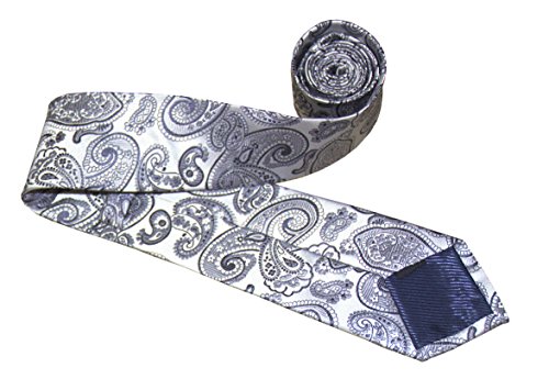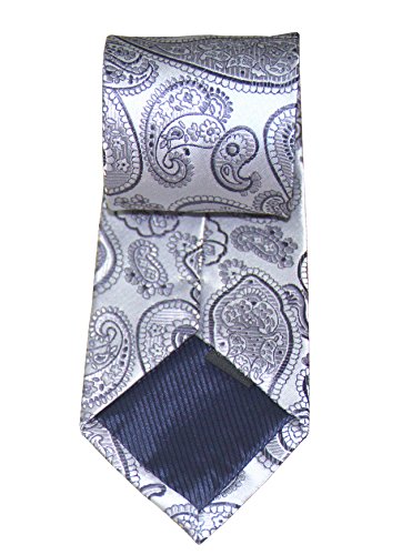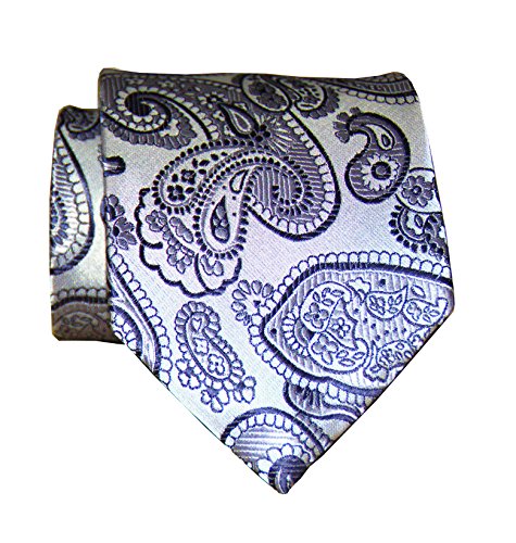 *A classic, time-honored pattern is given a sleek update with this striking paisley necktie in a dazzling silver. The paisley pattern was first found in India in the 16th century to promote health and rebirth by using imagery of the lotus leaf, which symbolizes these traits in Indian culture. A necktie of this color can be matched with virtually any choice of suit or shirt, especially one with a fine pattern like herringbone, checks, or delicate pin stripes.