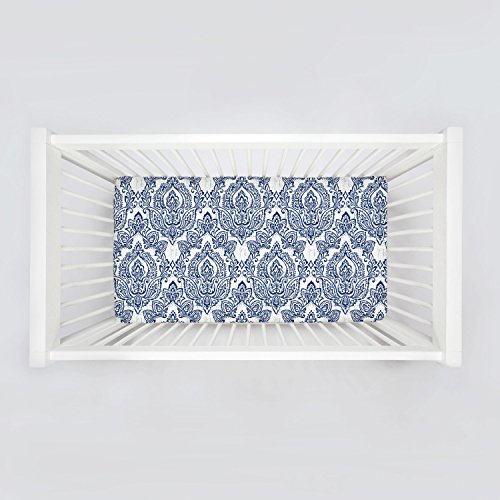 -. Binding : Baby Product -. Brand : Carousel Designs -. Color : Blue -. Feature : ORGANIC 100% COTTON, SUPER SOFT - Carousel Designs crib sheets are made with 100% certified organic cotton fibers, which are P.R.Inted in the USA with certified organic inks. Both the cotton and the inks are third party GOTS (Global Organic Textile Standard) certified. Each crib sheet is a woven 200 thread count fabric that is perfect for your baby girl or baby boy. / MADE IN THE USA - Carousel Designs makes all of its products right here in the USA. This guarantees the products you use for your precious baby are of the highest quality and because we ship directly to you it is at a P.R.Ice that can't be beat. You will not find another crib sheet of this quality and P.R.Ice made in the USA! / FITS STANDARD CRIB MATTRESSES PERFECTLY - Every sheet is expertly sewn with deep pockets and elastic all the way around to hug your baby's mattress securely. Our fitted crib sheets are made for standard crib and toddler bed mattresses measuring 28" x 52". With thousands of customers since 1988 you can count on this being the best crib sheet you'll own! / MACHINE WASHABLE AND VERY DURABLE - We have been making crib sheets for almost 30 years and we know how many washes they go through! Our sheets are guaranteed to last through multiple washes while maintaining their luxurious feel. Make sure to wash your crib sheet before use to ensure the best fit and softness for baby. / PERFECT GIFT FOR BABY - Moms love Carousel Designs products and especially our fitted crib sheets. Whether you're giving a gift from a baby registry or looking for something to give at a baby shower, Carousel Designs makes the highest quality baby bedding and nursery decor all here in the USA. Specifically, our personalized and custom crib sheets have been known to be the hit of many baby showers. -. Label : Carousel Designs -. Manufacturer : Carousel Designs -. MPN : a32f5fcc-0ddd-4d6a-aa84-55d574d0e9ea -. NumberOfItems : 1 -. PartNumber : a32f5fcc-0ddd-4d6a-aa84-55d574d0e9ea -. ProductGroup : Baby Product -. ProductTypeName : BABY_PRODUCT -. Publisher : Carousel Designs -. Studio : Carousel Designs -. Title : Carousel Designs Personalized Custom White and Navy Vintage Damask Crib Sheet Bailey Idea