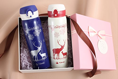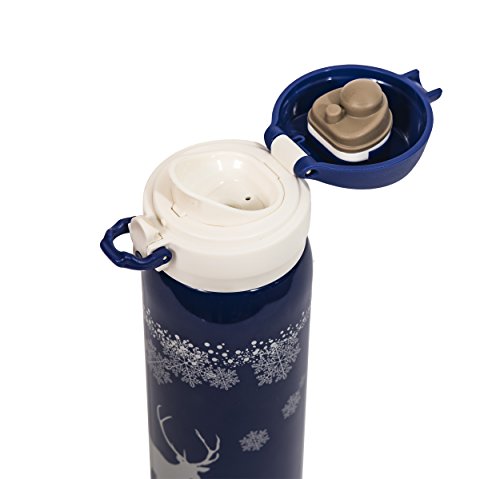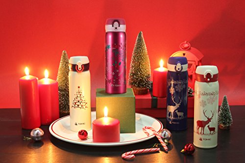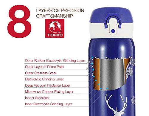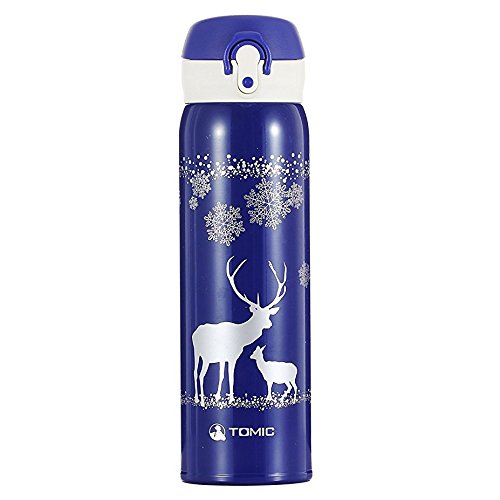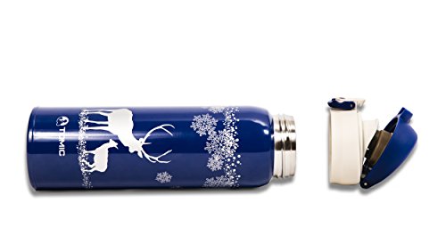 TOMIC Vacuum Insulated Stainless Steel Travel Mug with Flip Open Lid, Double Wall (Christmas Blue)