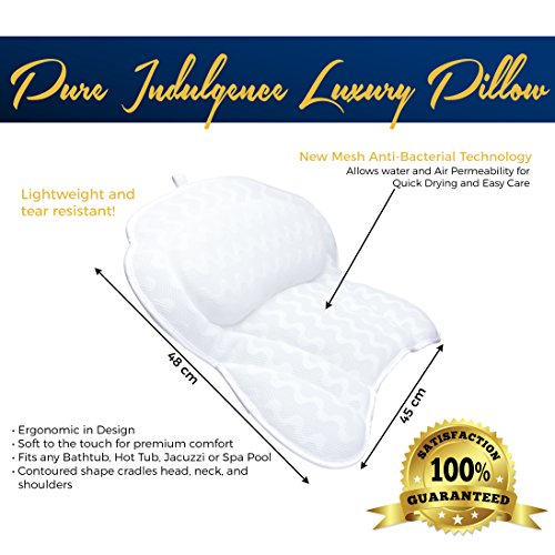 Pure Indulgence Luxury Bath Pillow : Luxurious Bath Pillow For All : Ergonomic Bathtub Cushion for Neck, Back, Head & Shoulders :Designed...