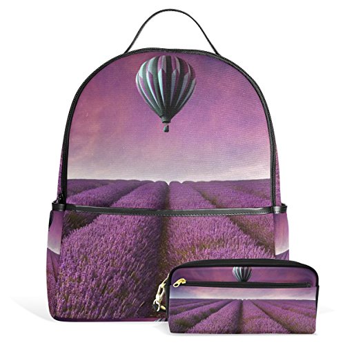 (CoolPrintAll)/Accessories/Luggage, Bags Travel/DIRECT FROM USA/Lavender Field Print Unisex Rucksack Casual Daypack Backpack with Pencil Case
