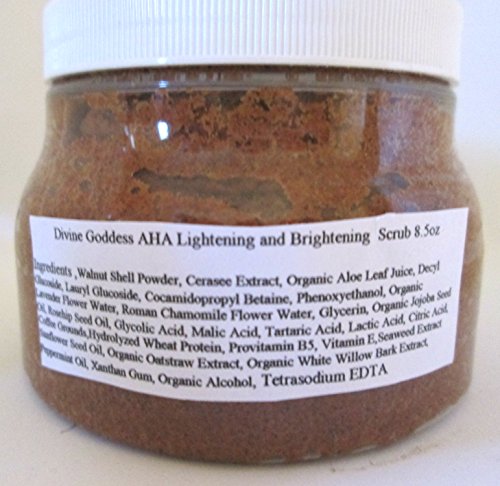 -. Feature : Compare to Whitenicous scrub which is over $100 for 3.5oz Our scrub has more ingredients to get the job done than others on the market! Reduce Appearance of Scars and Darkspots on body , To lighten dark spot and scars you should scrub on the area and around it let it on the area for 3 to 5 mins and wash off and than apply the skin bleaching or lightening lotion to the scar or darkspot repeat the process 2-4x a week for 1-3months for new scars and darkspots & up to 6 Months for older scars . / Softs and Exfoliates skin, Contains Essentials Oil to nourish and moisturize skin, Highly Concentrated with Kojic Acid, Beta Carotene AHA Acids,Tumeric, Vitamin E & More / Brightens and lightens skin , Can be use together with skin bleach creams such as Piona or Divine Goddess Bleaching Creams / May expereince a slight peel use Sunscreen SPF 50 OR HIGHER May not be for sensitive skin, but we also make another scrub for sensitive / Removes Layers of dead skin to make skin lightening lotion penetrate skin and worker faster