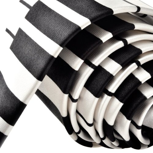 This is a classy piano design pattern hand made skinny necktie. This tie is the latest and hippest neckwear that will take you to the next level! Measures a standard 58 inch length but sports a cool 2 inch skinny width. Black and white color in a smooth nice medium satin finish. Freshen your wardrobe with this latest comeback style neckwear. This tie is a must have for your neckwear collection.