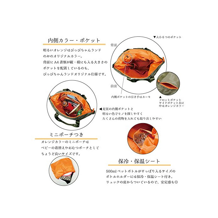 원본상품명: 【Amazon.co.jp 限定】ぴっぴちゃんランド×ハベストヒルズ コラボ 2way マザズリュック カキ×オレンジ PH-B001 限定カラ