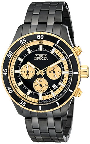 -. Binding : Watch -. Brand : Invicta -. Color : gold -. Department : mens -. EAN : 0886678219469 -. Feature : Chronograph functions with 60 second, 60 minute and 24 hour gold tone sub dials; date window between 4:00 and 5:00 / Black dial with gold tone and white hands and hour markers; luminous; 18k gold ion-plated stainless steel bezel with black top ring; 18k gold ion-plated stainless steel crown and pushers; flame fusion crystal; black ion-plated stainless steel case and bracelet / Japanese-quartz Movement / Case Diameter: 45mm / Water Resistant To 330 Feet -. IsAdultProduct : 0 -. Label : Invicta -. Manufacturer : Invicta -. Model : 17738 -. MPN : 17738 -. PackageQuantity : 1 -. PartNumber : 17738 -. ProductGroup : Watch -. ProductTypeName : WATCH -. Publisher : Invicta -. Studio : Invicta -. Title : Invicta Men's 17738 Specialty Analog Display Japanese Quartz Black Watch -. UPC : 886678219469
