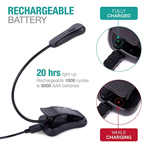 - NO MORE WASTING MONEY ON BATTERIES - EVER. FEATURES BUILT-IN RECHARGEABLE 1000MAH LI-ION BATTERY, enjoy your wireless 60 HOURS reading without charging (at low brightness setting). 3 power modes to choose from, USB ports, power banks, and 5V phone charger (not included). Standard Android micro-USB cable included. Never worry about finding a compatible cable if get lost.